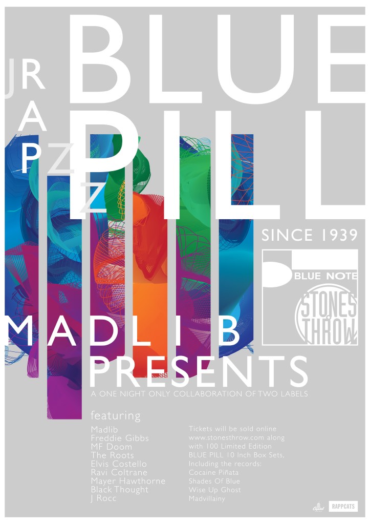 Named after Madlib’s ‘Shades Of Blue’ and the iconic ‘taking the blue pill’ moment from the Matrix franchise, this event is a metaphorical night of music collaboration between two renowned music labels: Blue Note and Stones Throw Records. A limited edition set of four vinyls would be released and sold, featuring Shades Of Blue by Madlib, Cocaine Piñata by Freddie Gibbs and Madlib, Madvillany by MF DOOM and Madlib, and Rise Up Ghost by The Roots and Elvis Costello.